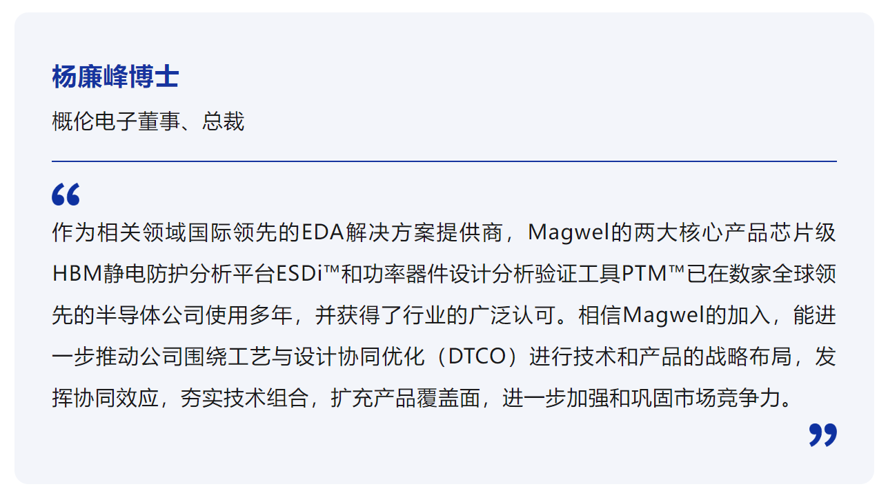 随着芯片中器件特征尺寸的不断缩小和芯片集成度的不断提高,ESD问题越来越成为芯片可靠性的主要问题之一。优化ESD设计不仅可以提升芯片的可靠性,也可以对芯片的面积进而优化,从而获得更好的市场竞争力。同时,随着越来越广泛的各类终端、网络、数据中心等电子产品和系统,以及新能源汽车等的应用,功率器件和电源管理芯片是其高效和稳定运行的基础元素,需要专业和可靠的设计和验证工具优化其设计。在广阔的市场需求和技术演进推动下,2023年8月,人生就是博尊龙凯时电子完成对比利时EDA公司Magwel的100%股权交割,并将Magwel旗下产品和技术纳入公司现有及未来的产品规划。人生就是博尊龙凯时电子和Magwel在提升模拟和功率半导体整体解决方案的市场竞争力方面有着共同的目标,此次也是Magwel旗下两款产品ESDi™和PTM™首次在国内市场正式发布。
