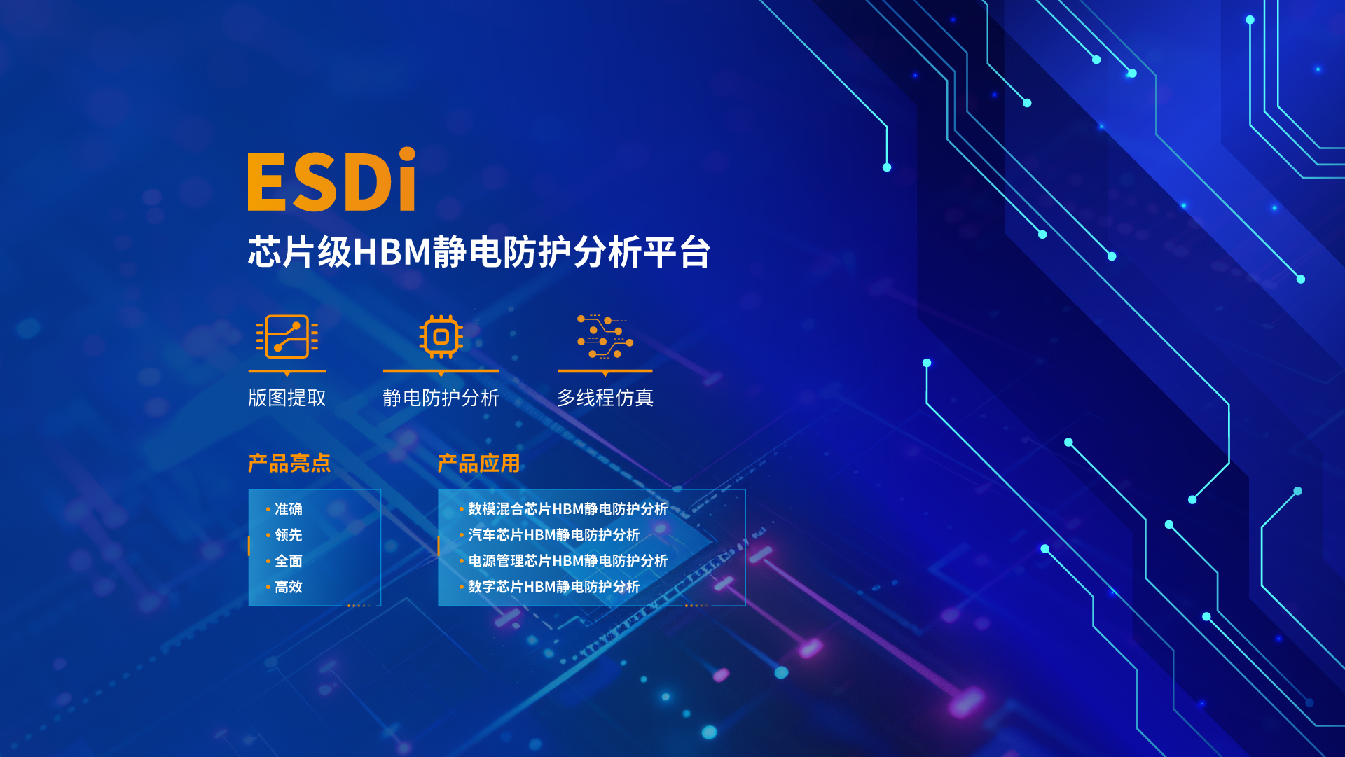 2024ESDi™平台是一款基于仿真的芯片级HBM静电防护分析平台,为芯片设计流程的各阶段提供全面的HBM验证解决方案。该平台包括原理图级、版图级HBM分析和验证工具。在数模混合芯片、车规芯片、电源管理芯片和数字芯片等不同场景的HBM静电防护分析中均有广泛应用,被国际知名的分立器件和电源管理、射频、传感器等领域的IDM和芯片设计公司所采用。