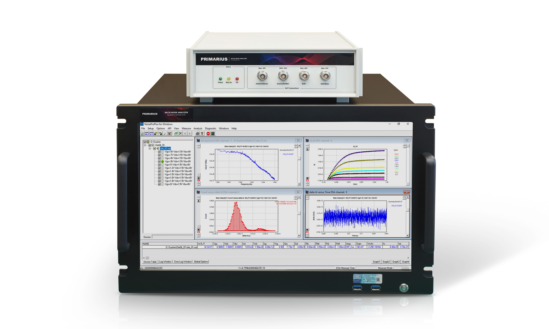 • Delivers a significant and innovative improvement in hardware and software design to meet the challenge of explosive growth requirements for low frequency noise test of advanced technology nodes, especially FinFET technology